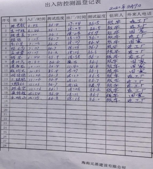 元基公司在返崗復(fù)工后,每日在上下班前給每位員工測試
