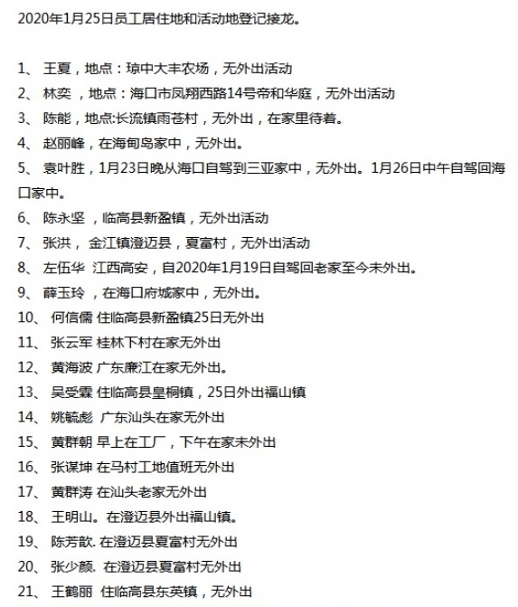在疫情期間,每日組織員工使用微信接龍工具在公司群進(jìn)行員